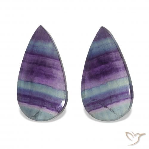 これらは 16.89 カラットの天然マルチカラー 蛍石宝石で、pear shapeが 2 個あり、正確なサイズは 22.65 x 11.97 x 3.42 mm です。 これらの蛍石のルース宝石はインドで採掘されたもので、その透明度は Transparent. です。 これらの天然蛍石宝石は処理されていません。